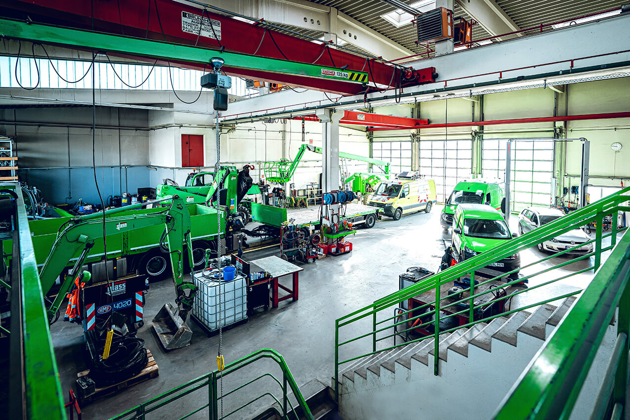 The Glass Group has its headquarters in Mindelheim (approx. 80 km west of Munich). This is where Glass GmbH Bauunternehmung, the central and largest construction firm in the Glass Group, is located. The company’s 170,000 sqm premises include not only an administrative building, but also a formwork hall, locksmith’s shop, car workshop, a large construction yard, and an in-house precast concrete plant. Glass GmbH Bauunternehmung in Mindelheim employs a total of 555 white-collar and blue-collar staff.