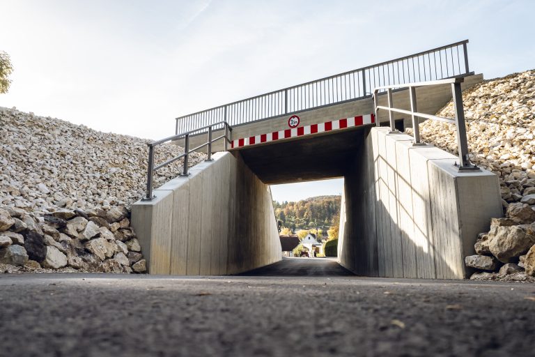 Bei Tunneln ist je nach geografischen Gegebenheiten der Tunnelbau in offener Bauweise oft die einfachere und kostengünstigere Wahl. Auch hier sind wir in Planung und Bauausführung tätig und setzen vorwiegend im Straßen- und Verkehrswegebau die entsprechenden Tunnelbauten um. Je nach Auftrag finden wir für jeden Tunnel die optimale technische und wirtschaftliche Lösung. So werden auch Themen wie beispielsweise Lärmschutz oder die Möglichkeit zur Bebauung oberhalb des Tunnels von Anfang an berücksichtigt. Als Spezialist für Ausführungen in Beton verfügen wir zudem über die Kompetenz und Erfahrung, auch spezifischere Umsetzungen wie Tunneldecken aus PP-Faserbeton umzusetzen.