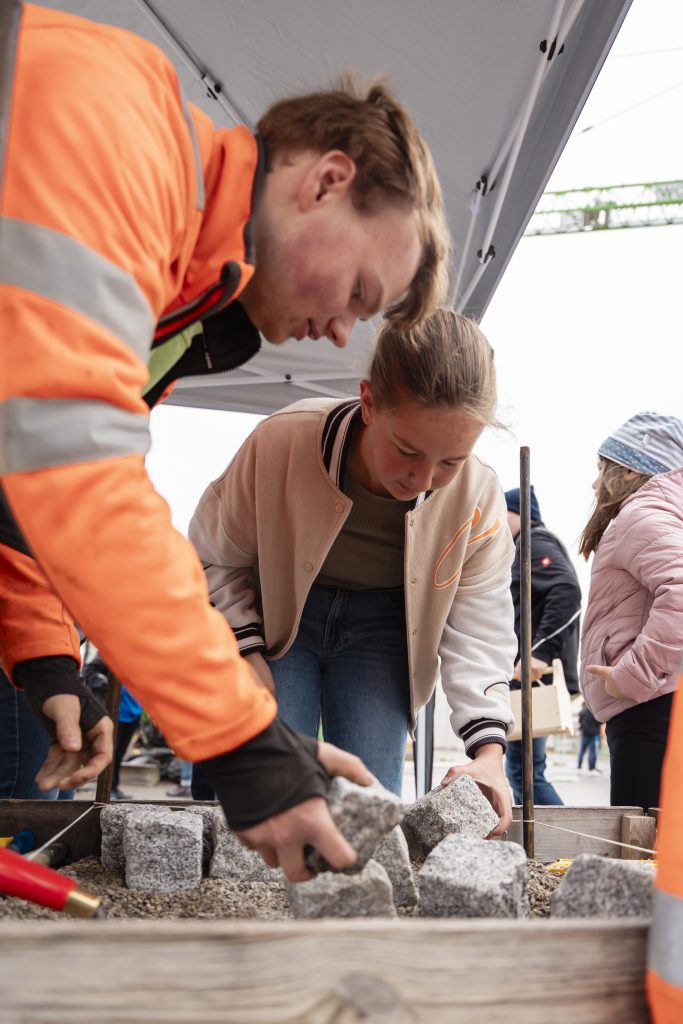 Geboten war für jeden etwas: An sieben Ausbildungs-Stationen konnten sich Schülerinnen und Schüler über unsere Ausbildungsberufe am Standort Mindelheim informieren und sich hier gleich selbst ausprobieren. Vom Betonieren eines eigenen Betonfertigteils über das Erstellen einer Konstruktionszeichnung erfuhren sie dabei aus erster Hand von unseren aktuellen Azubis, auf was es bei den unterschiedlichen Berufen ankommt. Auch wer sich für große Maschinen interessiert, kam auf seine Kosten. Im Lkw konnte man eine Runde übers Gelände drehen, im Bagger Kies schaufeln und in der firmeneigenen Kfz-Werkstatt unter die Motorhaube von Auto und Radlader gucken. Wer alle Ausbildungsstationen durchlaufen hatte, konnte anschließend an einem Gewinnspiel teilnehmen und tolle Preise gewinnen.