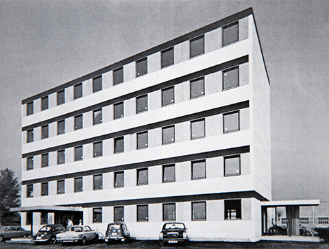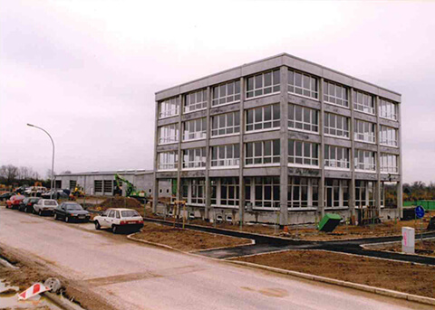 Bau des Glass Verwaltungsgebäudes am heutigen Standort Daimlerstraße Mindelheim